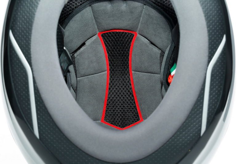 La calota está confeccionada con fibra carboaramídica y cinco densidades de EPS diferentes garantizan una protección que es 48% más alta de lo que exige la ley en términos de valores HIC y G, todo esto con un peso estático inédito para un producto de este tipo. La visera, con tiene mecanismos de agarre muy pequeños de manera de extender el campo visual, aspecto al que se suma el exclusivo sistema Ultravision AGV que cubre una visión periférica increíble de 190°.