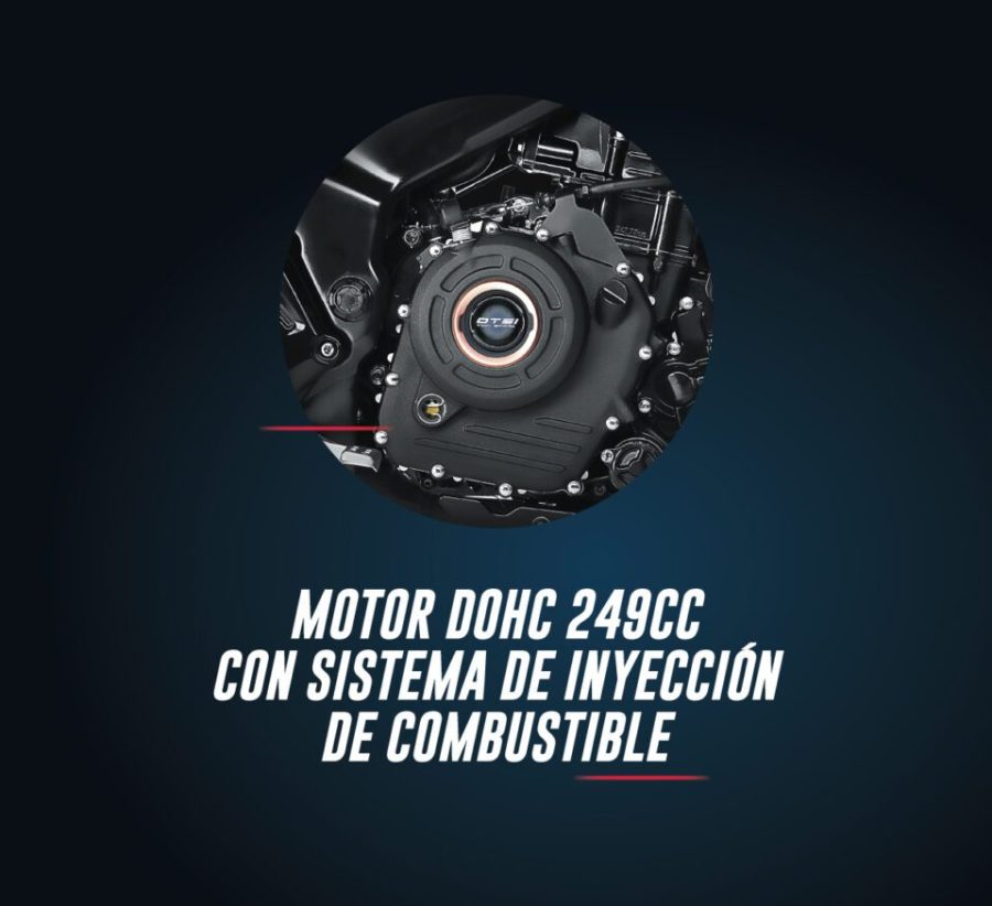 Para más datos, viene equipada con un motor de 248.77 cc, monocilíndrico, DOHC con sistema FI de inyección electrónica de 4 válvulas, refrigerado por líquido y tecnología DTS-i de doble bujía.