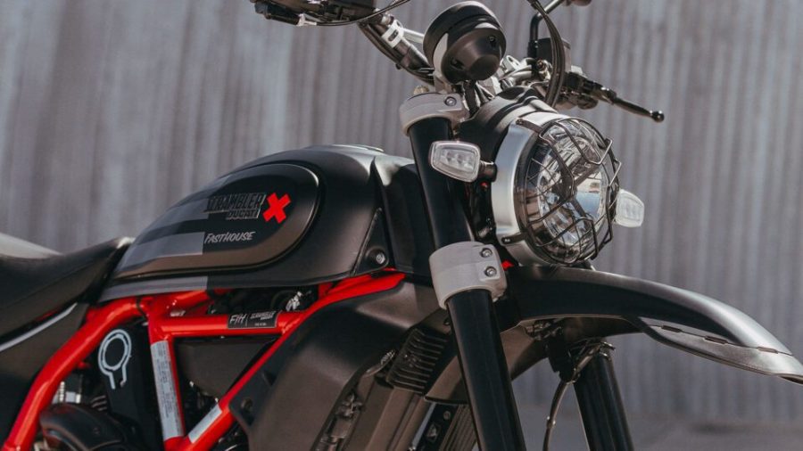 Fabricado a partir de la base de la Ducati Scrambler Desert Sled, el modelo Fasthouse se distingue por su insignia, que replica los gráficos utilizados por las motos que participaron en la Mint 400.