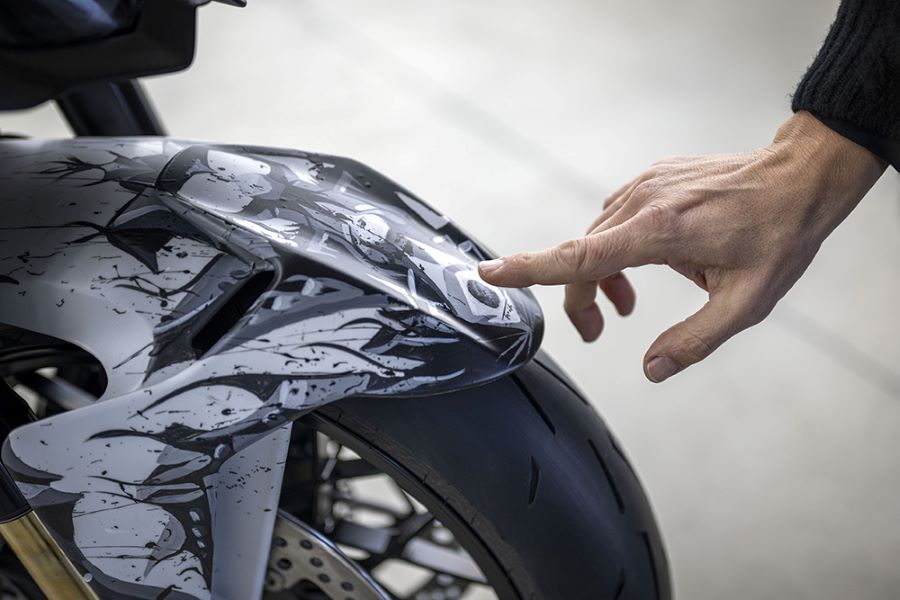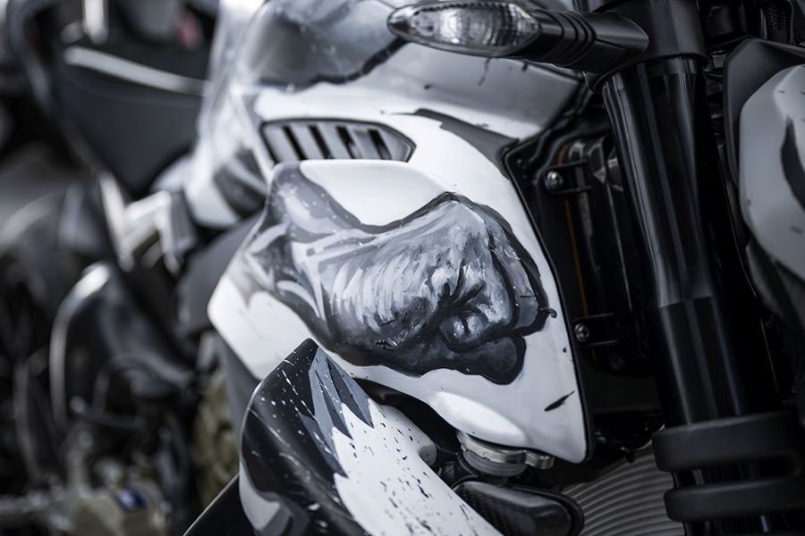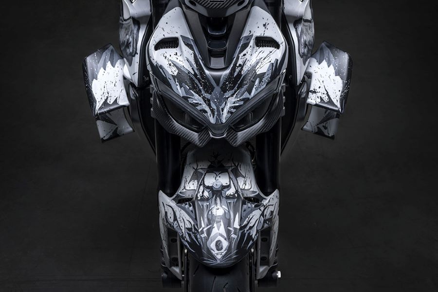 Esta obra combina mito y realidad, encarnando una fuerza sobrehumana que se fusiona con la racionalidad potenciada por las formas y volúmenes de la Streetfighter V4. Transme potencia y una sensación ilimitada de confianza en las propias capacidades.