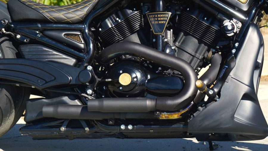 La única condición que pidió el futuro propietario es que la máquina sea decorada con los colores negro y dorado. En consecuencia, en LDK optaron por un negro mate que contrasta plenamente con las nervaduras de toda la carrocería y un color dorado que encaja a la perfección, sin romper la elegancia de esta Custom Harley Davidson.