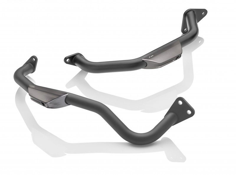 La marca italiana produjo un set de accesorios para la Honda CRF 1000 L Africa Twin, entre los que sobresalen las defensas de motor, el protector de faro, los retrovisores mecanizados 4D y la tapa del tanque con sistema de bloqueo de apertura.