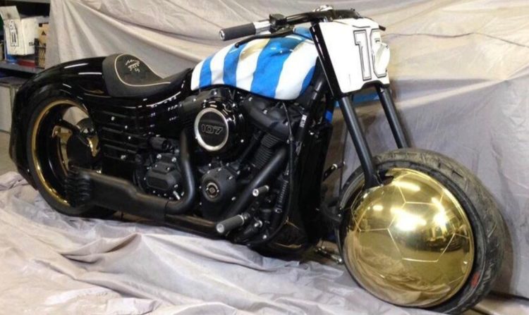 Una Harley Davidson Fat Bob 107 personalizada es uno de los recuerdos que más valoró el astro futbolístico Diego Armando Maradona. «Yo soy Diego» se se denomina el vehículo que le mandó el Dinamo Brest.