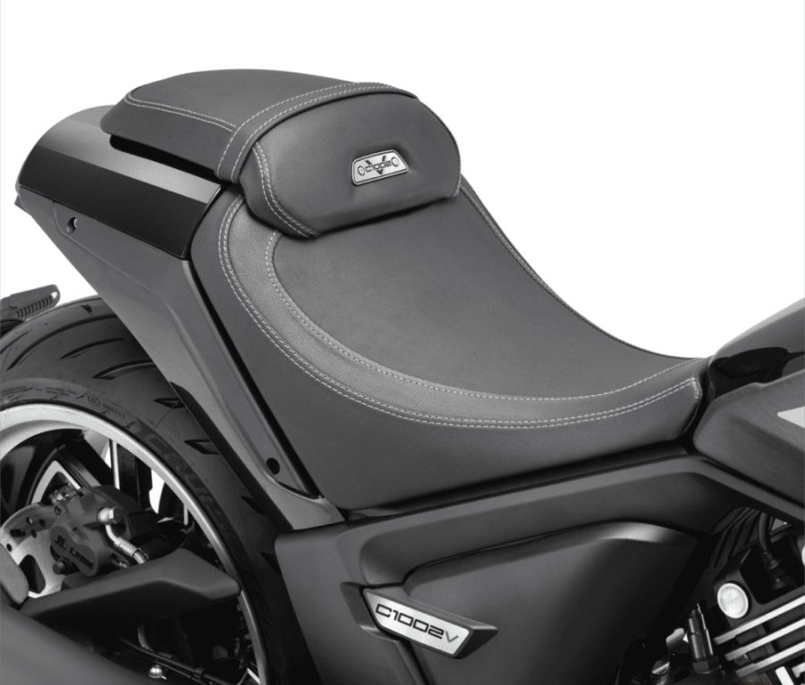 Las silueta moderna con toques futuristas, inclusive, denota manubrios tirados hacia atrás con un frontal en dirección opuesta. La C1002V es baja (680 mm del suelo) como los cruceros típicos y también tiene de ellos los escapes dobles.