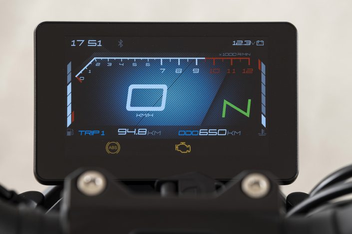 Su angulosa y limpia figura, los faros LED de tres «garras» dentro de una cubierta identificada por colores y una pantalla TFT con conectividad, hacen la diferencia. También contribuye la altura de asiento baja de 810 mm y otro ítems positivo: el tanque de 12,5 litros.