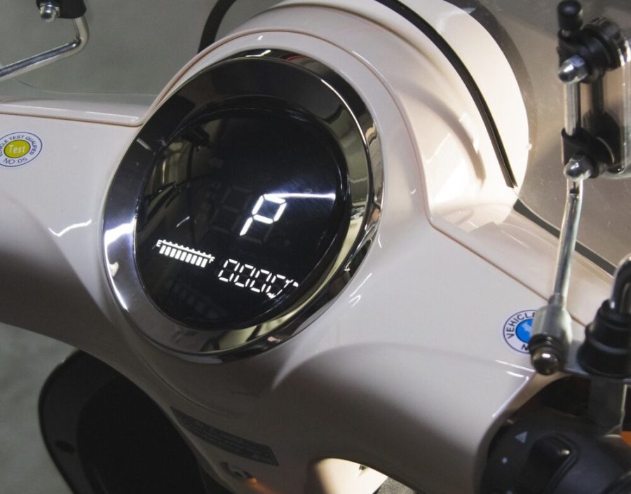 La Okinoi Roma fusiona la funcionalidad moderna de su motor eléctrico con una estética retro que rinde homenaje a la tradición de las motocicletas italianas. Cada detalle, desde su silueta elegante, sus líneas clásicas, su tablero digital redondo y el parabrisas reflejan la pasión por el diseño icónico y atemporal. Además, trae una parrilla trasera cromada para transportar objetos o instalar una práctica maleta mediana.