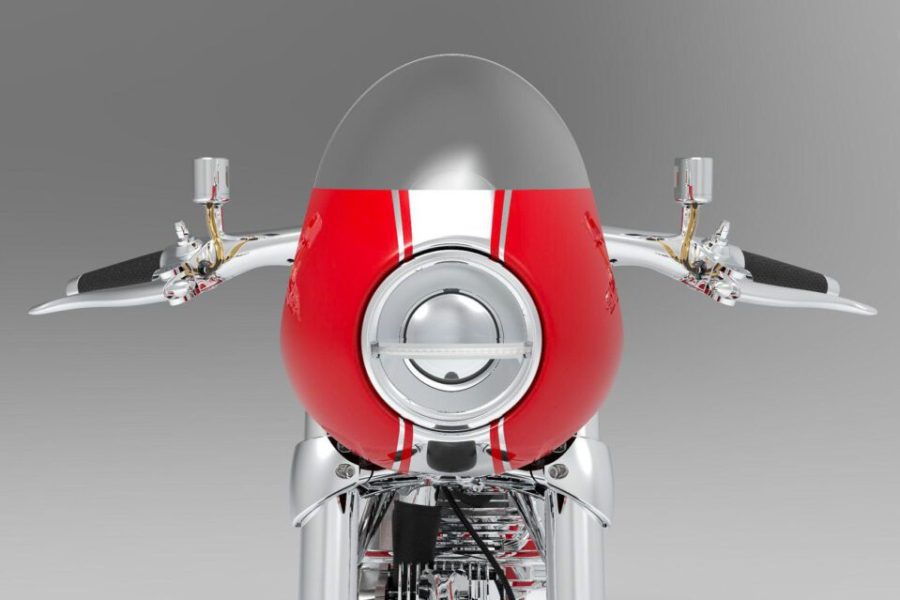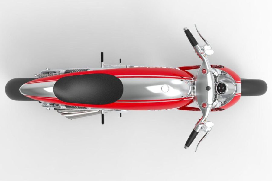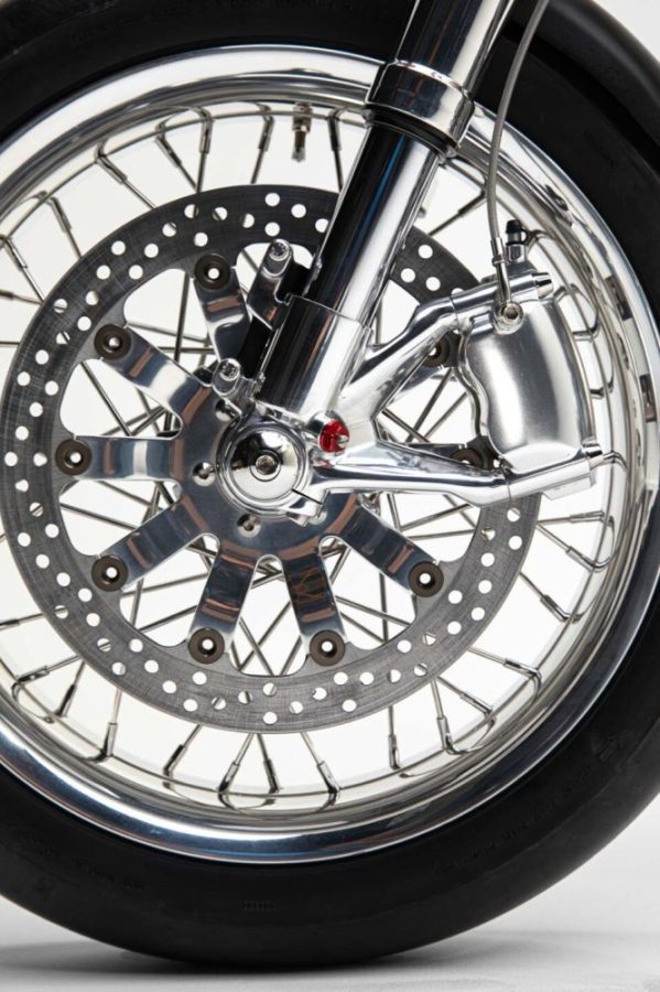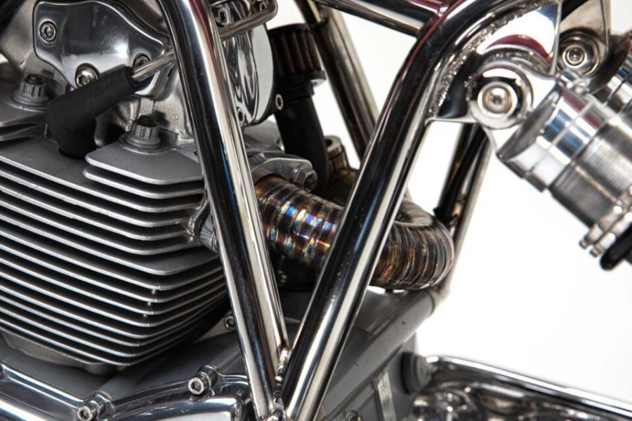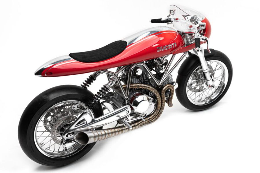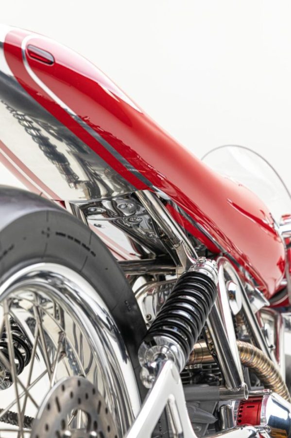 Un trabajo de pintura de siete capas y un carenado de aluminio hecho a mano completan el motivo.